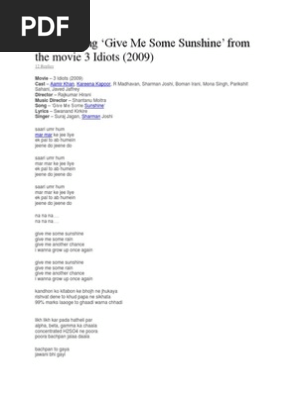 Give Me Some Sunshine Song Singer Name - 3 idiots hindi movie 2009 full song give me some sunshine,give me some rain in high quality by 911.please do rate & subscribe.thank you