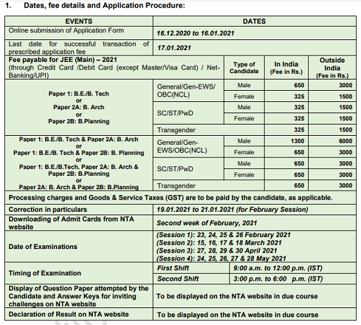 Nta Jee Mains Online Form 2021 Exam Date Fee Apply Online Berojgar Indian Sarkari Result Sarkari Jobs Latest Naukri Updats Candidates shall be required to fill the application form online and pay the exam fee.
