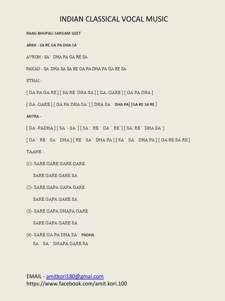 Raag Bhupali Notation Pdf - This tune is based on teen tal which has sixteen beats: