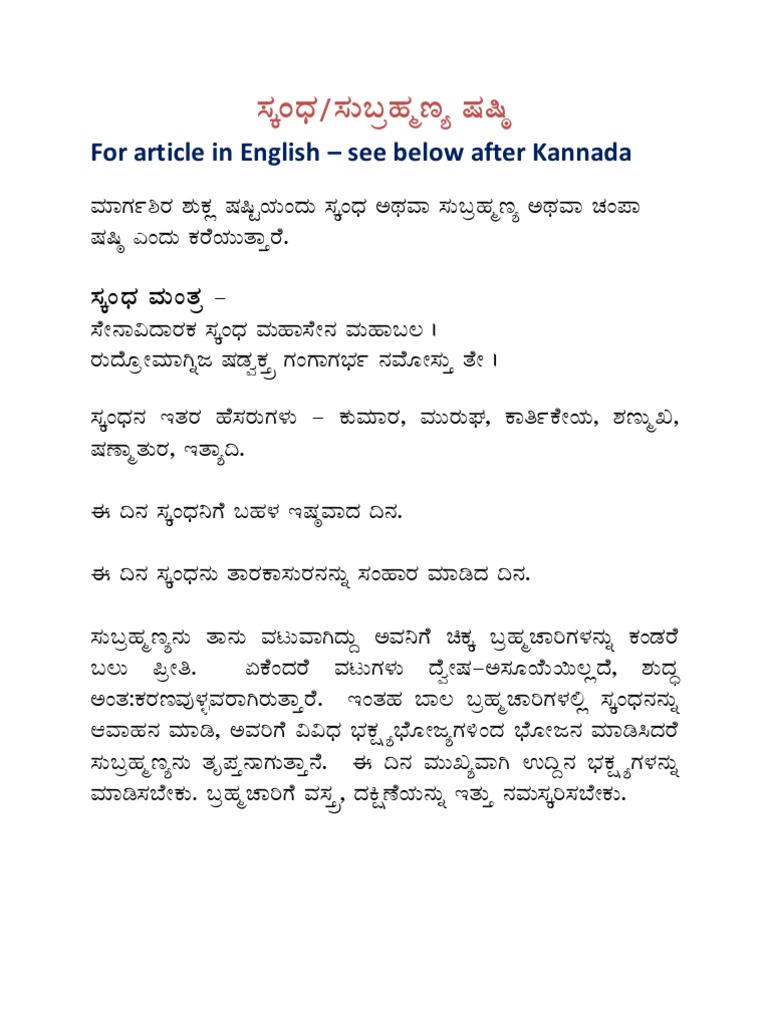 Subramanya Stotram In Kannada - Son of lord parameshwara who destroyed tripura!