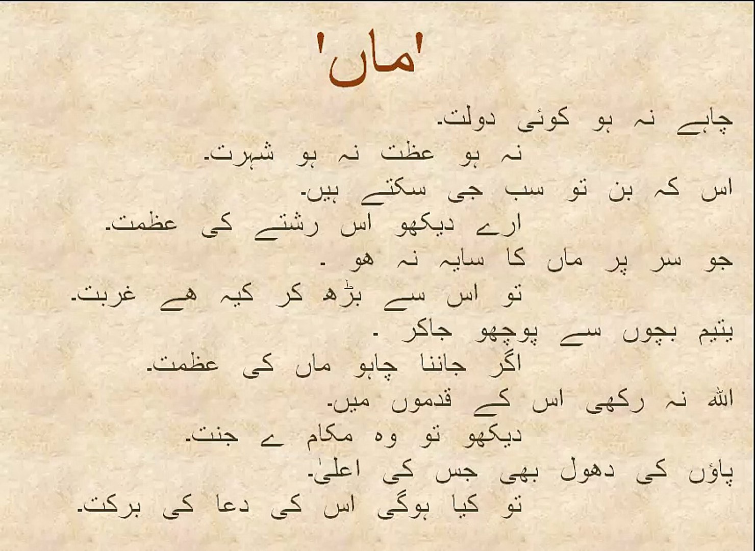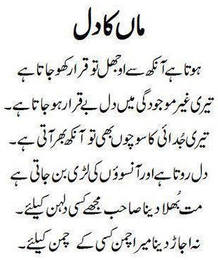 Urdu Poetry On Mother - Read top ghazals and top nazams.